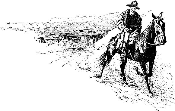 Ich kam jetzt zu dem festen Entschluß, mir ein Reitpferd anzuschaffen. Nie hatte ich, außer im Zirkus, eine so tolle, freie, prächtige Reitkunst gesehen, wie sie diese malerisch gekleideten Mexikaner, Kalifornier und mexikanisierten Amerikaner in Carson Tag für Tag zum besten gaben. Wie die ritten! Nur ein klein wenig nach vorn gebeugt, fegten sie durch die Straßen wie der Wind; die breite Krempe ihres Schlapphutes stand kerzengerade in die Höhe, und sie schwangen die lange Riata über dem Kopfe. Eine Minute darauf waren sie nur noch ein Staubwölkchen, weit draußen in der Wüste. Beim Traben waren sie stolz und anmutig auf dem Pferde, als wären sie mit demselben verwachsen und hopsten nicht auf und nieder nach der albernen Manier der Reitschulen. Ich hatte bald ein Pferd von einer Kuh unterscheiden gelernt und brannte vor Begier, noch mehr zu können; ich war entschlossen, mir ein Pferd zu kaufen. Während dieser Gedanke mir im Kopf herumschwirrte, kam der Auktionator auf einem schwarzen Tiere über die Plaza gejagt, es war höckerig und eckig wie ein Kamel und auch ebenso häßlich; allein es wurde versteigert: »zum drittenmal zweiundzwanzig – Pferd, Sattel und Zügel für zweiundzwanzig Dollars, meine Herren!« und da konnte ich kaum widerstehen.