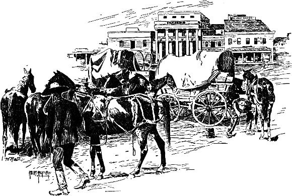 Auf der Poststation und auf dem Wege zum Gouverneur wurden wir verschiedenen Bürgern vorgestellt, darunter einem Herrn Harris, der sich zu Pferde befand. Derselbe begann ein Gespräch, unterbrach sich jedoch mit der Bemerkung: »Ich muß Sie auf einen Augenblick um Entschuldigung bitten; dort drüben steht der Zeuge, der geschworen hat, ich sei bei der Beraubung der kalifornischen Post beteiligt gewesen – eine ganz unverschämte Einmischung, da ich mit dem Menschen gar nicht bekannt bin.«