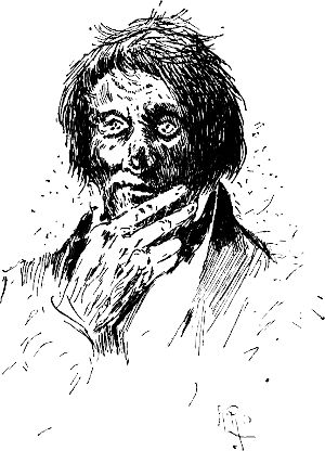 In dem Augenblick erschien die Laterne in den Händen der Frau O’Flannigan. Nachdem diese aus dem Bett gestiegen und Licht gemacht, hatte sie trotz ihrer Begier, sich von der Größe[16] des durch das feindliche Dach angerichteten Schadens zu überzeugen, wohlweislich nicht unterlassen, eine angemessene Weile zu warten, bevor sie oben nachsah, ob der Wind jetzt fertig oder noch mehr Unthaten vorhabe.