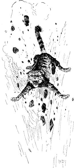 Einen gräßlicheren Alarmruf hätte es nicht geben können. Niemand wagte mehr das Zimmer zu verlassen aus Furcht, auf eine Tarantel zu treten. Jeder tappte nach einem Koffer oder[15] einem Bett und schwang sich hinauf. Dann folgte die eigentümlichste Stille – eine Stille gräßlicher Spannung, voll Erwartung, Hoffnung, Furcht. Es war pechfinster, und um das Schauspiel der vierzehn zu genießen, wie sie in höchst mangelhafter Toilette ängstlich auf Koffern und Betten hockten, mußte man sich schon mit der Einbildungskraft behelfen, denn zu sehen war schlechterdings nichts. Dann folgten gelegentlich kleine Unterbrechungen der Stille; man konnte an der Stimme erkennen, wer sprach und wo der Betreffende sich befand; auch vermochte man zu unterscheiden, aus welcher Richtung die sonstigen Geräusche kamen, die einer der armen Dulder durch sein Herumtappen oder eine Aenderung seiner Körperlage verursachte. Die ab und zu vernehmbaren Stimmen waren nicht sehr gesprächig – man hörte nur ein schwaches ›Au!‹ gefolgt von einem tüchtigen Aufstampfen; dann wußte man, daß der betreffende Herr einen haarigen Teppich oder sonst etwas dergleichen auf der Haut gespürt und daraufhin einen Satz aus dem Bette auf den Stubenboden gemacht hatte. Darnach wieder tiefe Stille. Jetzt rief eine nach Luft schnappende Stimme: